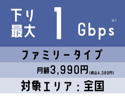 ※1 本サービスはベストエフォート型サービスです。記載の速度は技術規格上の最大値であり、実使用速度を保証するものではなく、パソコンやご利用のネットワーク機器、その他利用環境、回線の混雑状況により大きく異なります。