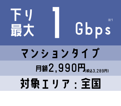 ※2 建物によって、最大速度が200Mbpsまたは100Mbpsの場合がありますが、価格は変わりません。
